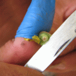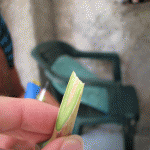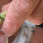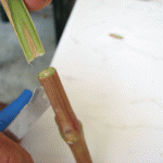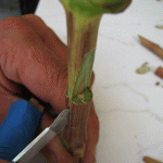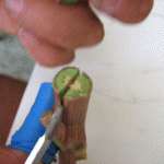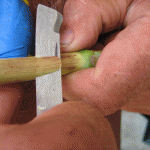 Slika 4-6. Kod pripreme podloge/ili plemke gdje će se raditi raskol, važno je odrezati nožem (mogu i vrlo oštre škare) jer tada nema nagnječenja tkiva